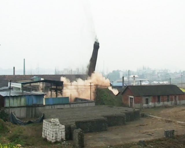3月30日14:00整,随着新登镇镇长徐林亮的“起爆”命令,高达48米、险象环生的烟囱在数秒内按设计方案缓缓倒下,在人群热烈的掌声中被成功实施爆破拆除。